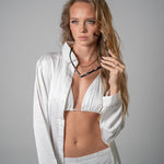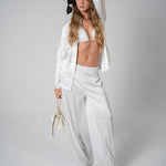Unwind in luxury and style with our shimmery Satin 3-Piece Co-Ord Set, the ultimate ensemble for holidays, traveling, or an unforgettable party look. Made from silky satin fabric, this set exudes a sense of effortless glamour, combining rich texture with fluid, flattering shapes that move beautifully with you. Whether you're lounging by the pool, exploring a new city, or dancing the night away, this chic co-ord set will have you looking and feeling your best. The shirt - is designed with a relaxed, slightly oversized fit, perfect for layering over the matching bikini top. the bikini top - offers a sleek and modern design with adjustable straps. The pants - feature a flowy, wide leg silhouette, creating a beautiful, breezy effect that’s perfect. Whether you're jetting off for a tropical getaway, attending a poolside party, or just enjoying a stylish evening out, the shimmery Satin 3-Piece Co-Ord Set ensures you look effortlessly chic and feel luxurious every step of the way. Wear them together for the ultimate holiday or travel look, or mix and match with other pieces for a range of effortless, stylish outfits.