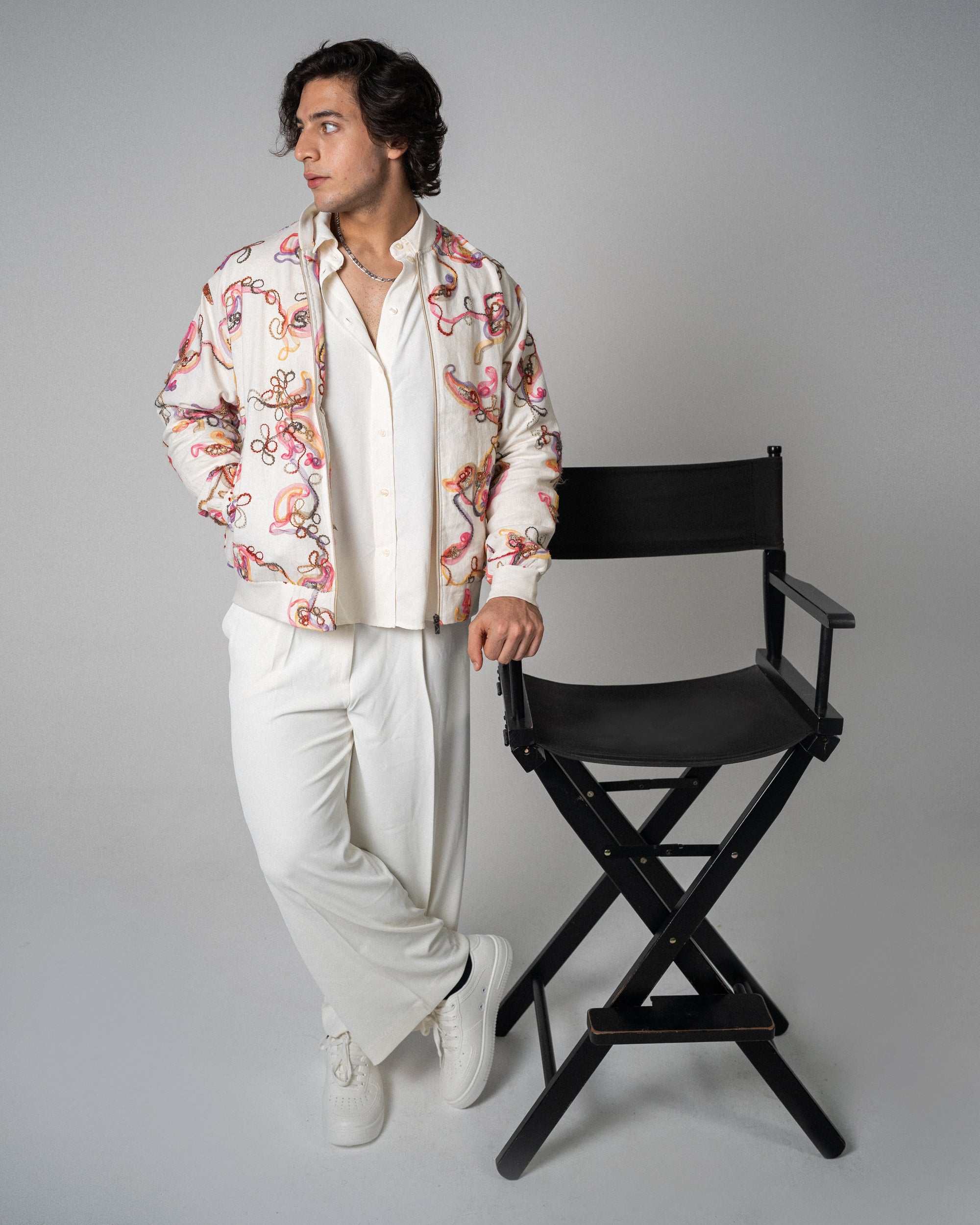 Crafted from high-quality linen, this bomber jacket offers a fresh, breathable
