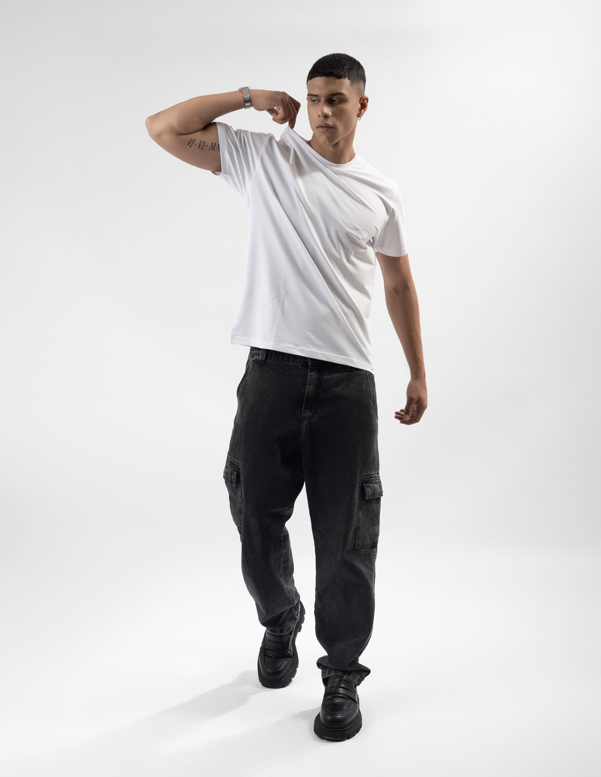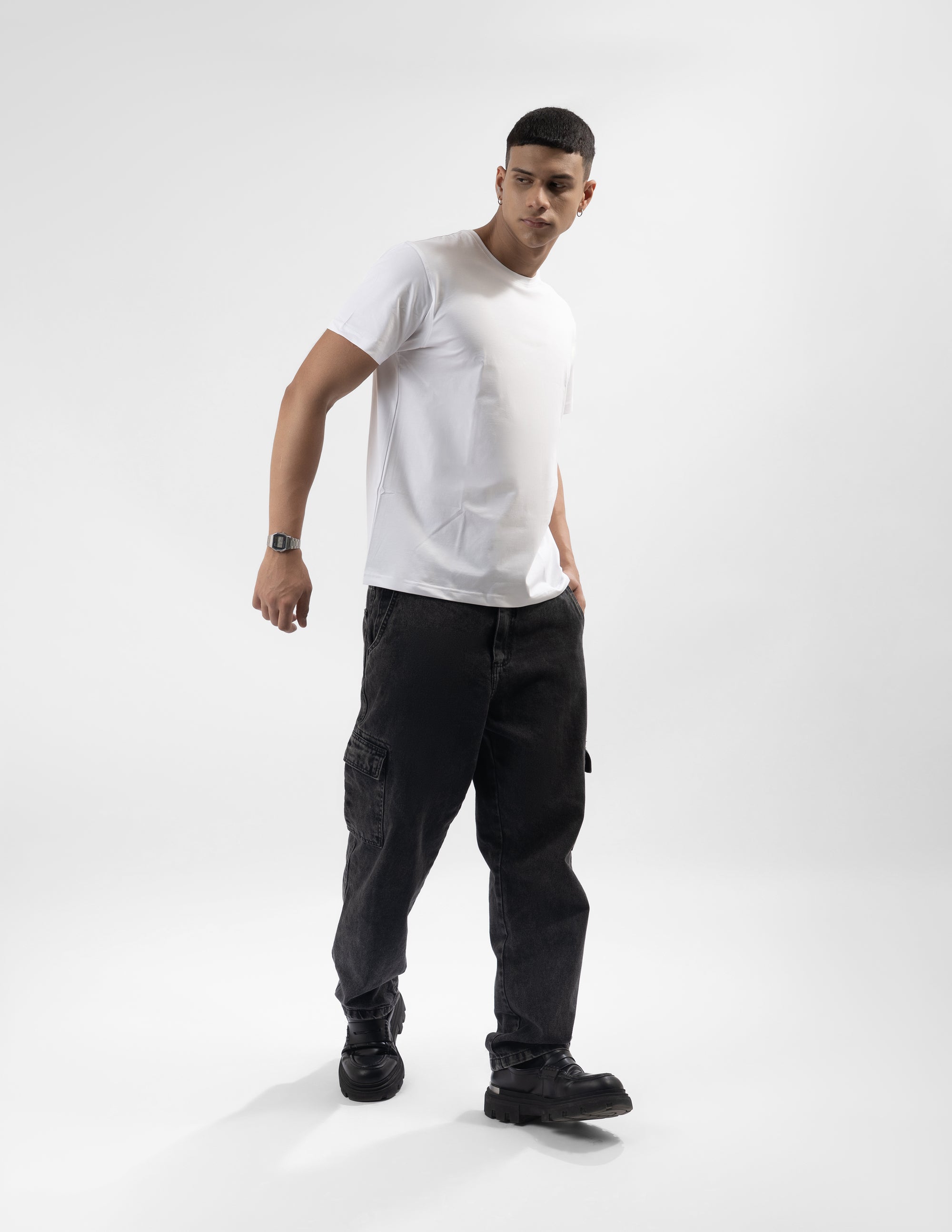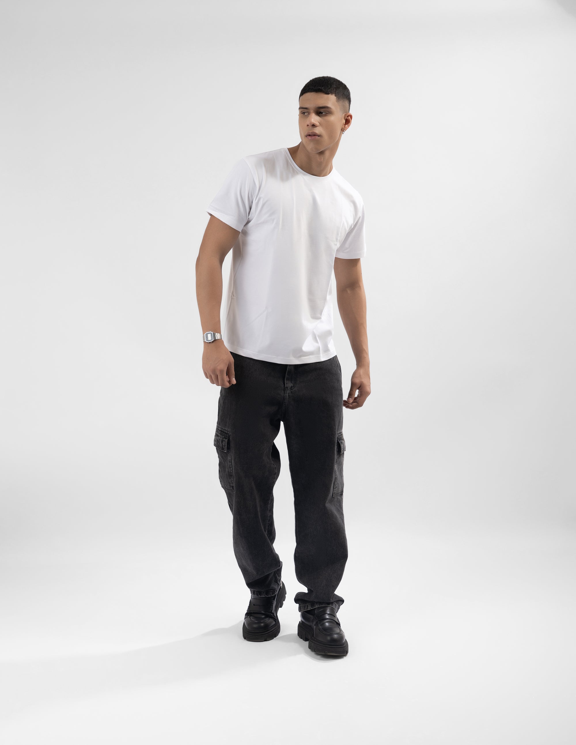 Crafted from a premium cotton-lycra blend, this regular fit T-shirt combines the breathable comfort of cotton with a touch of stretch for an impeccable fit. Designed to keep its shape while offering all-day ease, it’s the perfect balance of comfort, durability, and modern style.