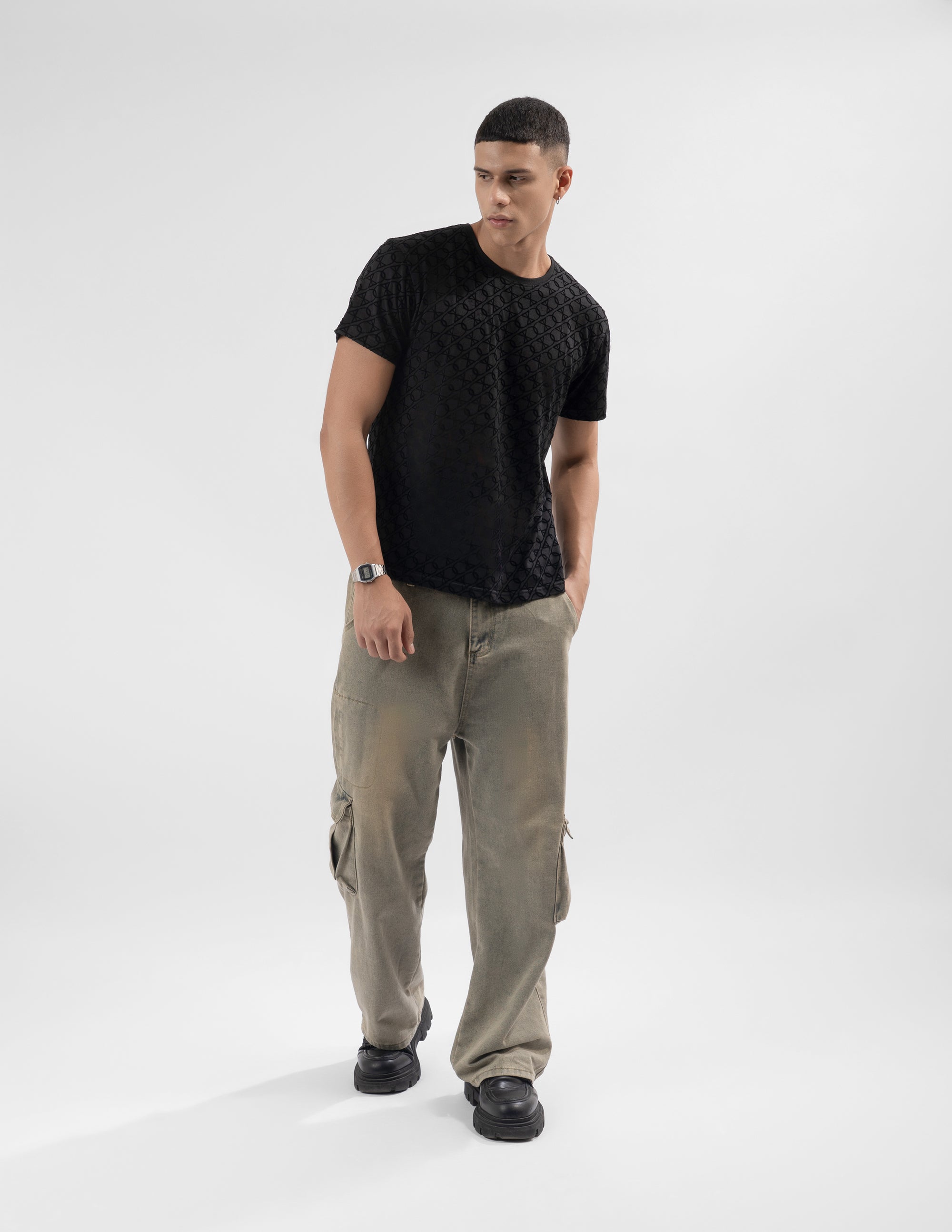 Crafted from a premium cotton-lycra blend, this regular fit T-shirt combines the breathable comfort of cotton with a touch of stretch for an impeccable fit. Designed to keep its shape while offering all-day ease, it’s the perfect balance of comfort, durability, and modern style.
