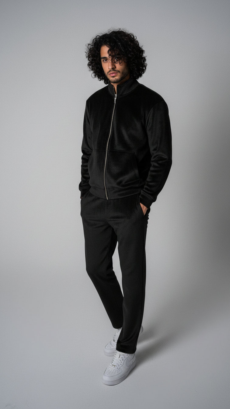 Experience the ultimate in comfort and luxury with our Double-Sided Velvet Tracksuit, featuring both pants and a zipper jacket crafted from plush velvet fabric. What sets this tracksuit apart is its double-sided velvet construction, where the inside of the fabric is just as soft and smooth as the outside. The zipper jacket boasts a sleek, modern design with a full-length zipper for easy wear, while the pants feature a comfortable, relaxed