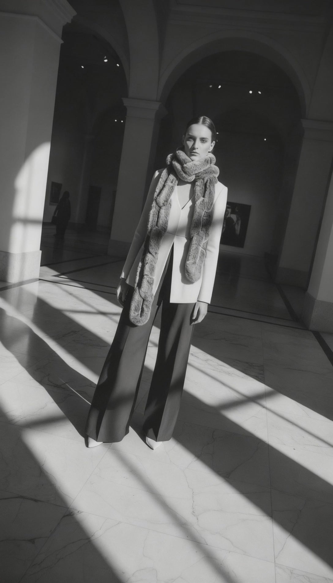 Each muffler is exclusively created by hand, taking an incredible 24 hours to craft. The intricate chain design showcases the finest quality fur, thoughtfully woven