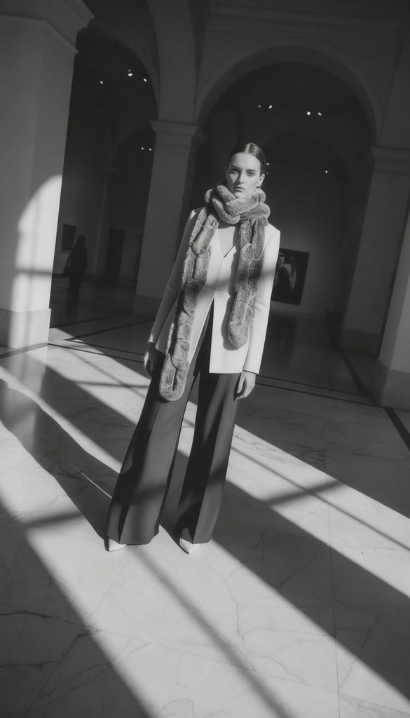 Indulge in the unparalleled luxury of our Chain-Style Fur Muffler, a meticulously handcrafted accessory that combines elegance, warmth, and artisanal craftsmanship.