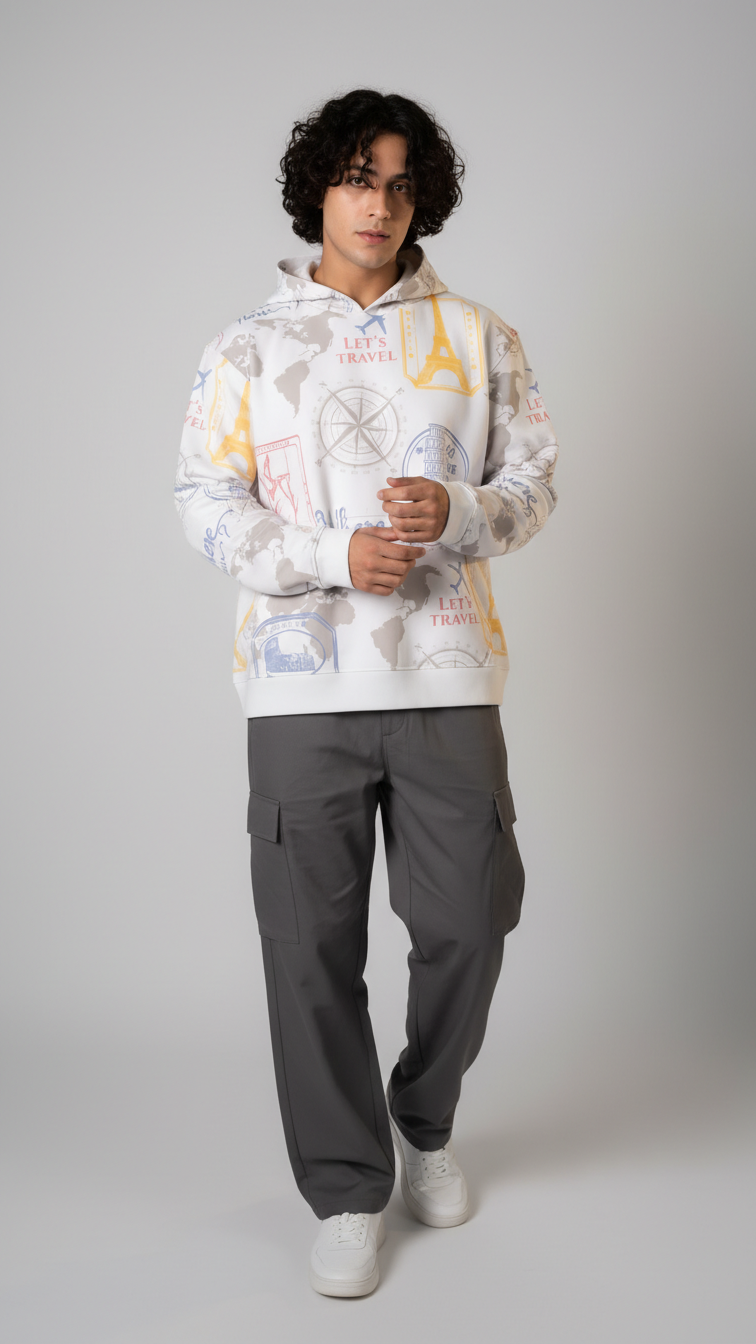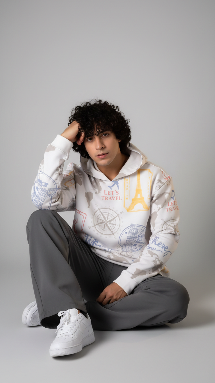 Crafted from superior-quality mercerized fleece (360-380 gsm), this sweatshirt offers an incredibly soft, cozy feel while providing warmth and durability. The high colorfastness ensures the white fleece and the sophisticated print maintain their vibrancy and richness after many washes, so you can enjoy its bold look for years to come. The mercerized finish adds a smooth, refined texture, elevating the quality and feel of the fabric.