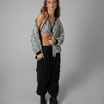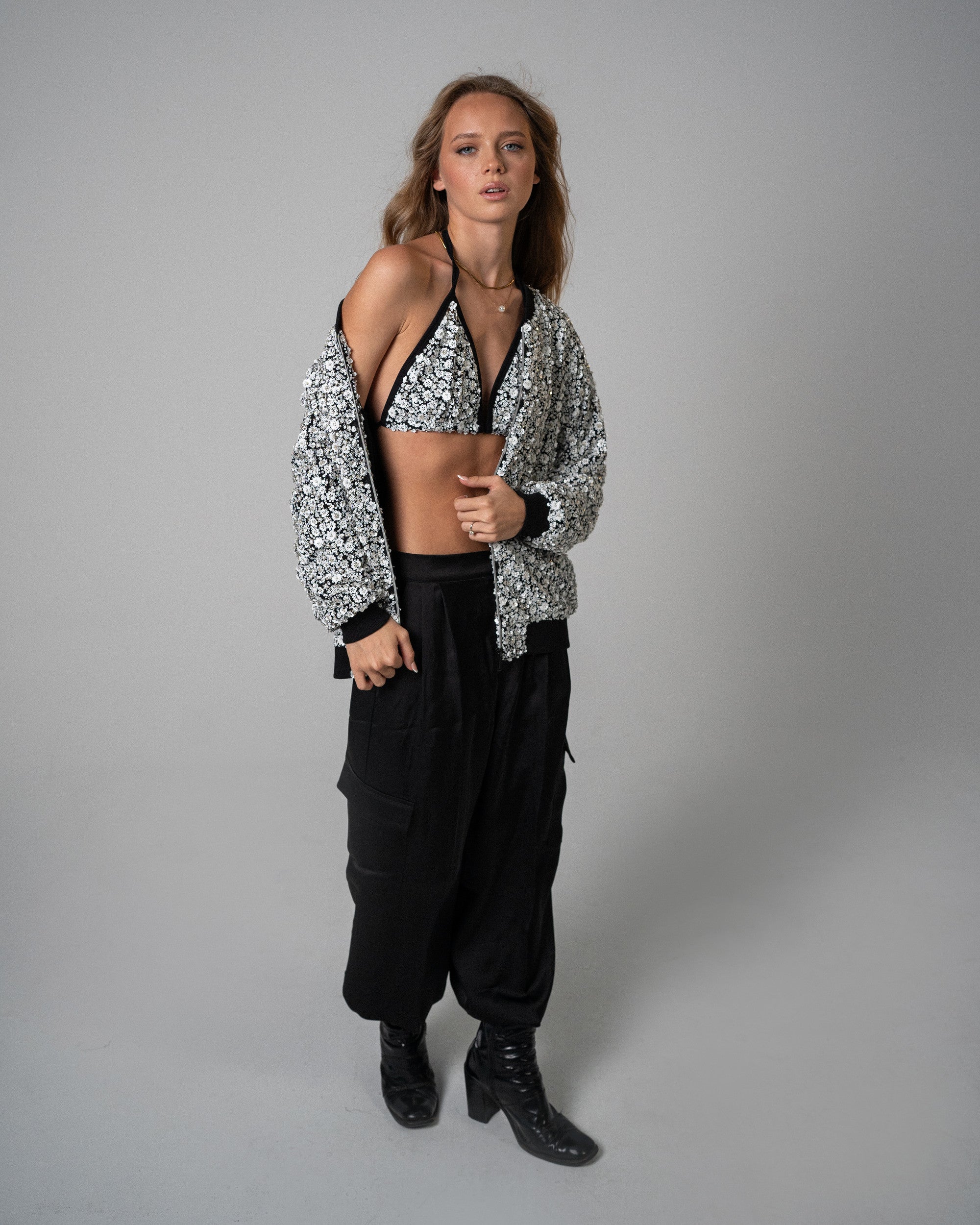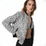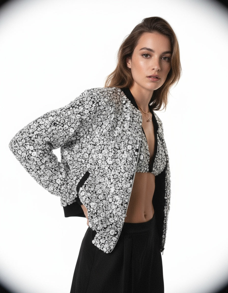 "Make a statement like never before with our glam bomber jacket the perfect fusion of high style and bold attitude. Crafted for those who dare to stand out, this jacket features a striking **blingy exterior** that catches the light and adds an instant touch of luxury to any look. With its high-gloss finish and dazzling details, you’ll shine whether you’re out on the town or making a statement at a casual gathering. Inside, the jacket surprises with its unique **satin lining**