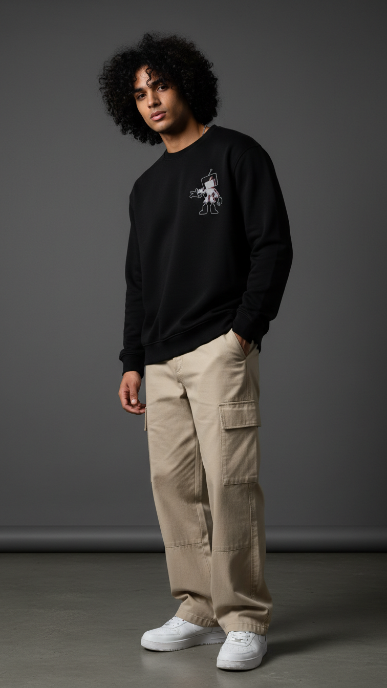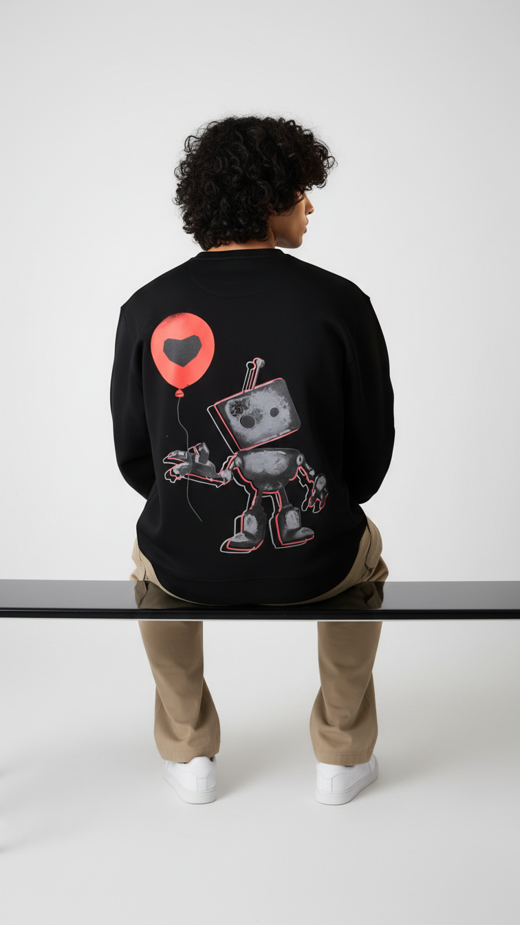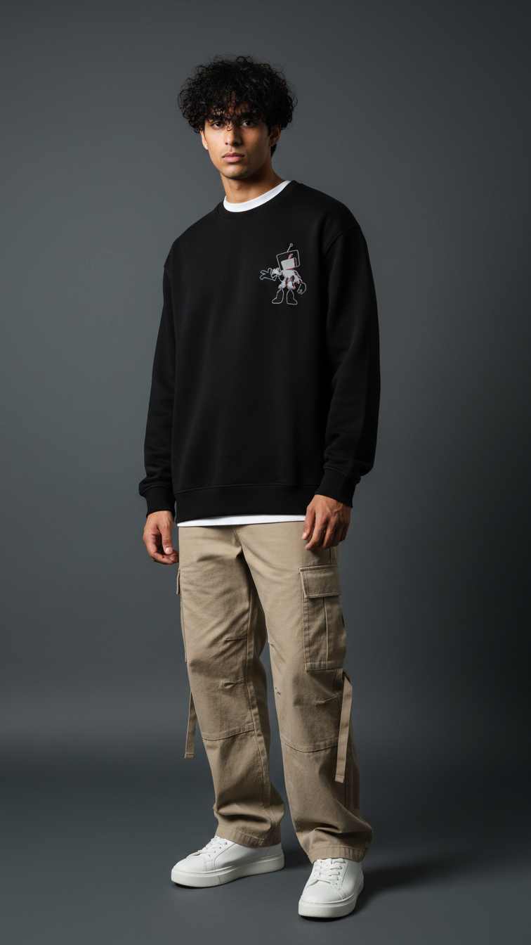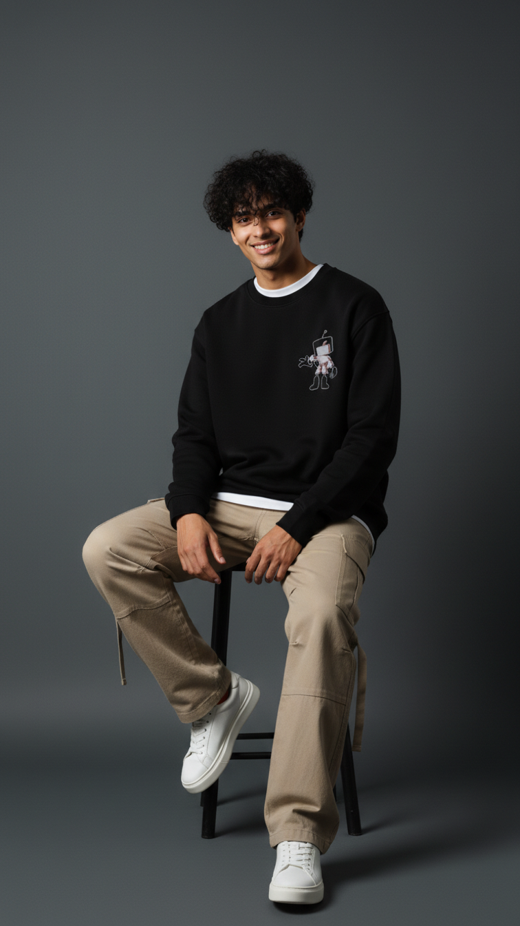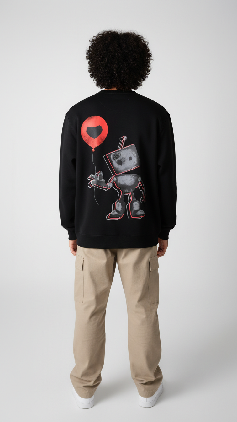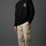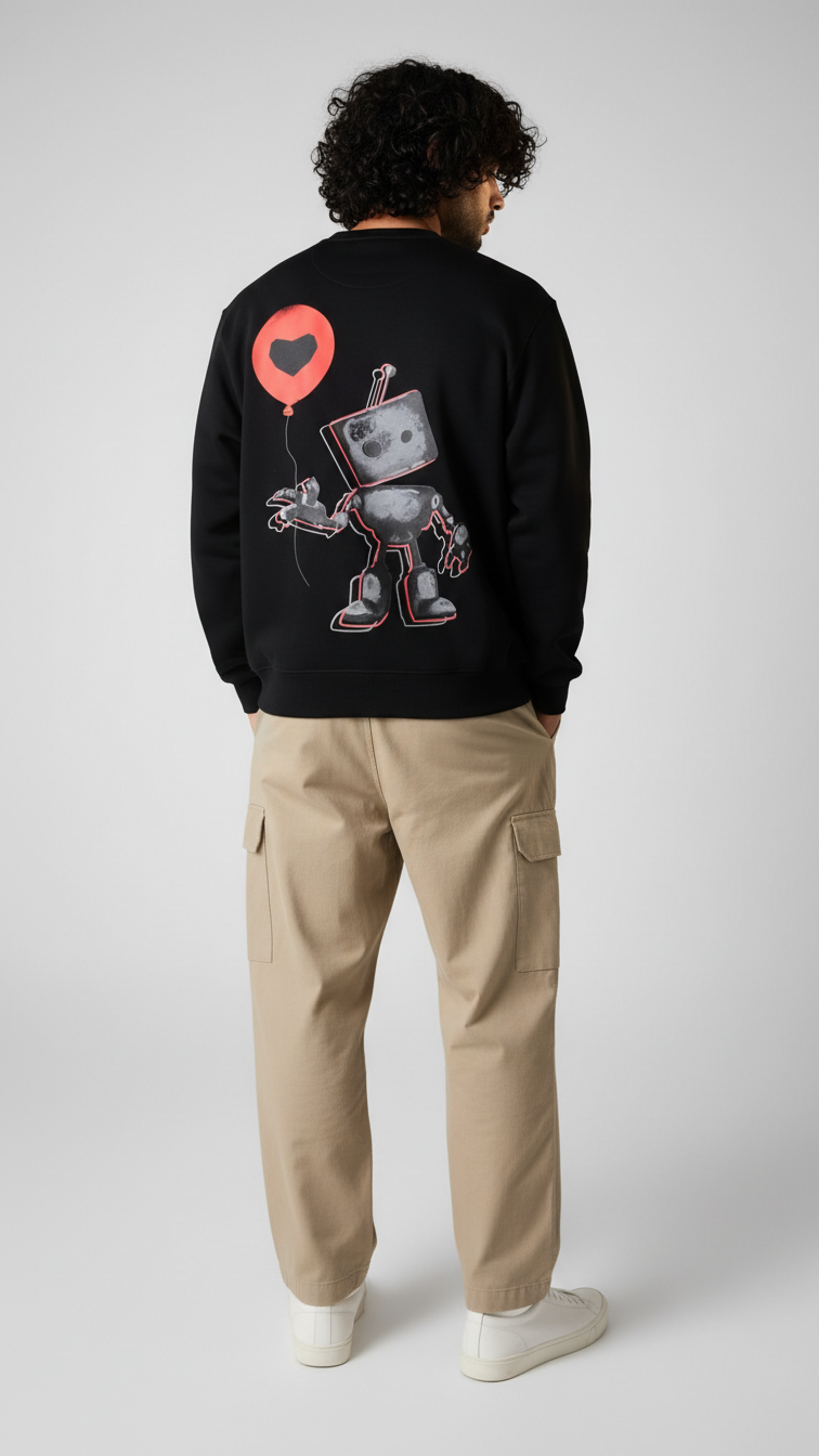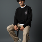 "Crafted from superior-quality mercerized fleece (360-380 gsm), this sweatshirt offers an incredibly soft, cozy feel while providing warmth and durability. The high colorfastness ensures the deep black fleece and the sophisticated print maintain their vibrancy and richness after many washes, so you can enjoy its bold look for years to come. The mercerized finish adds a smooth, refined texture, elevating the quality and feel of the fabric.