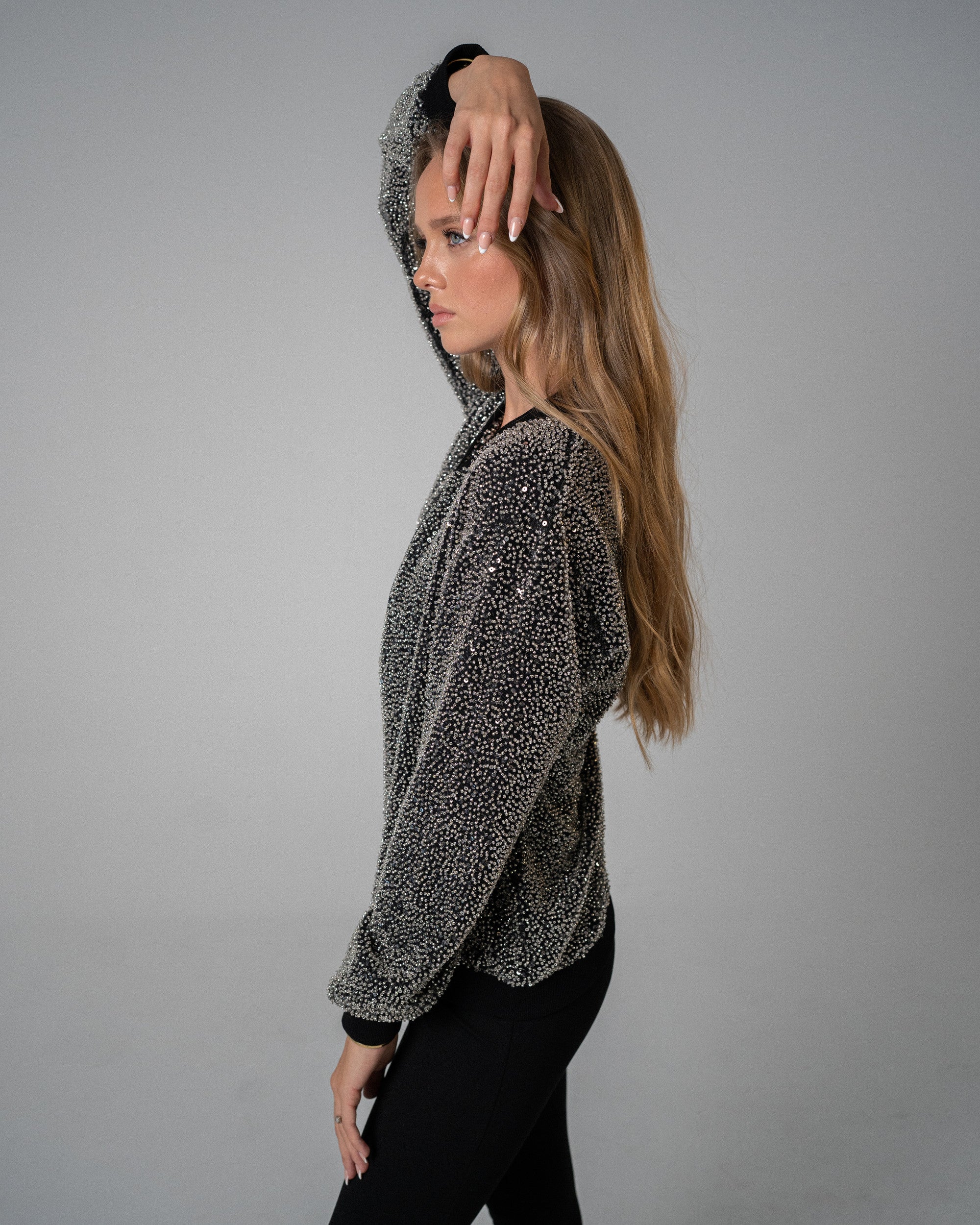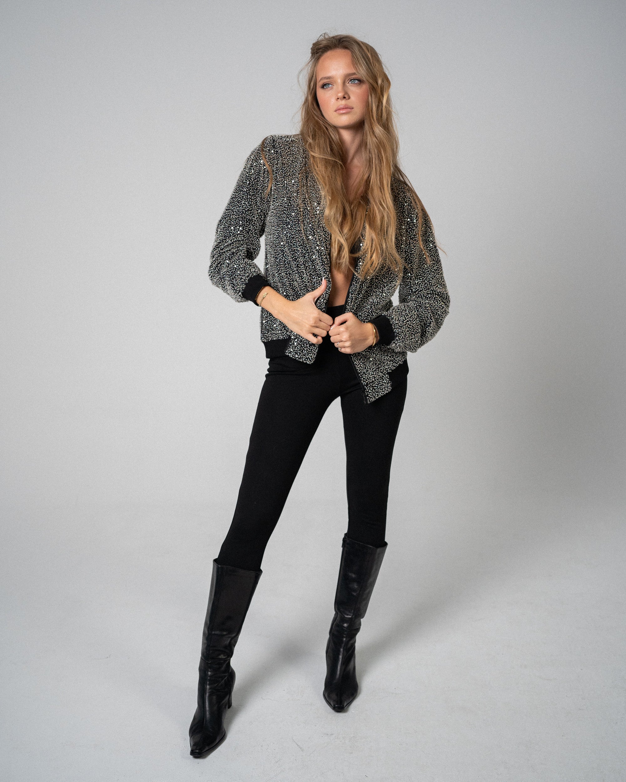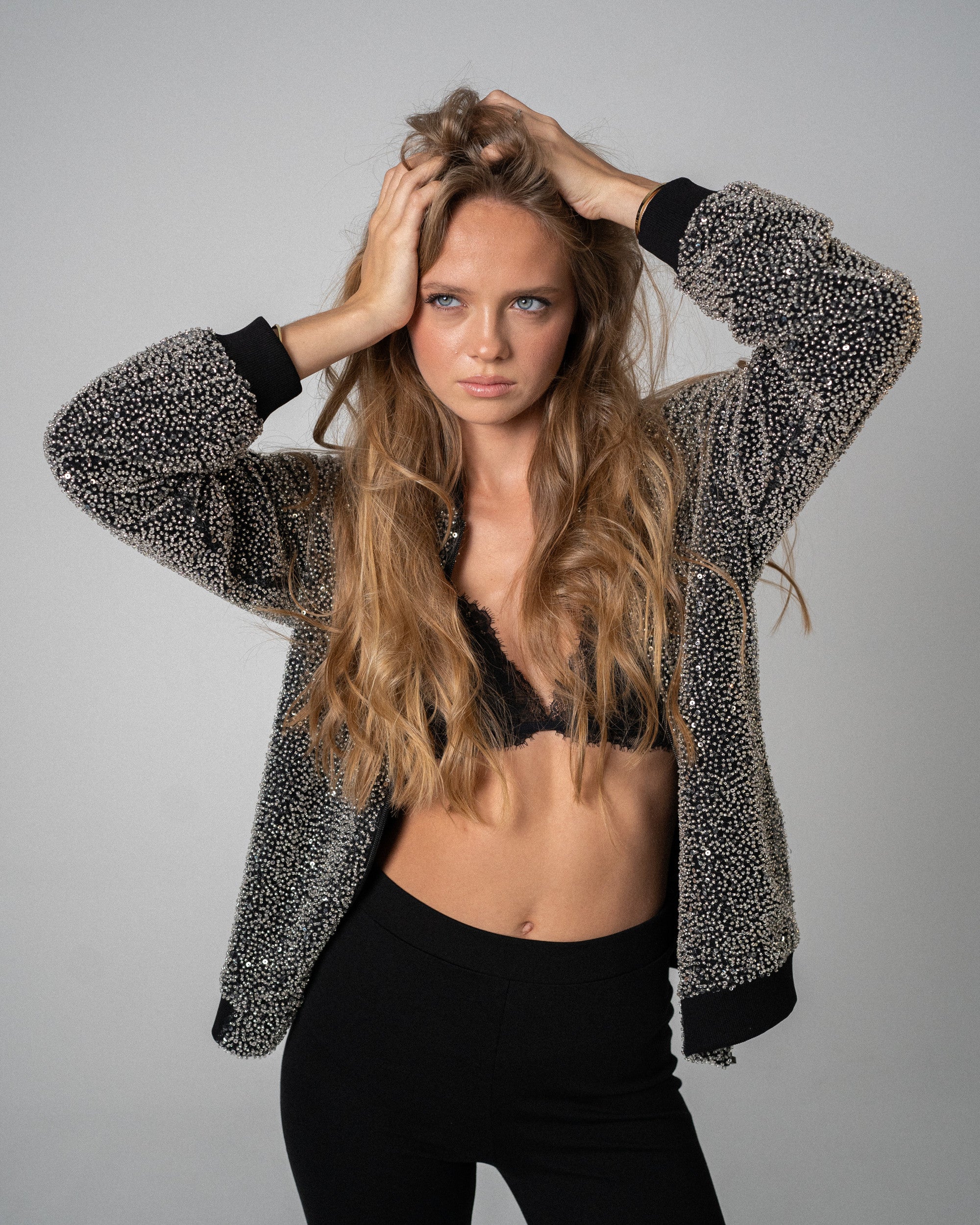 Make a statement like never before with our glam bomber jacket the perfect fusion of high style and bold attitude. Crafted for those who dare to stand out, this jacket features a striking **blingy exterior** that catches the light and adds an instant touch of luxury to any look. With its high-gloss finish and dazzling details, you’ll shine whether you’re out on the town or making a statement at a casual gathering. Inside, the jacket surprises with its unique **satin lining**, adorned with our exclusive **logo pattern** – adding a layer of opulence and sophistication that’s all about the finer details. The satin interior feels just as luxe as it looks, ensuring you stay comfortable while turning heads.