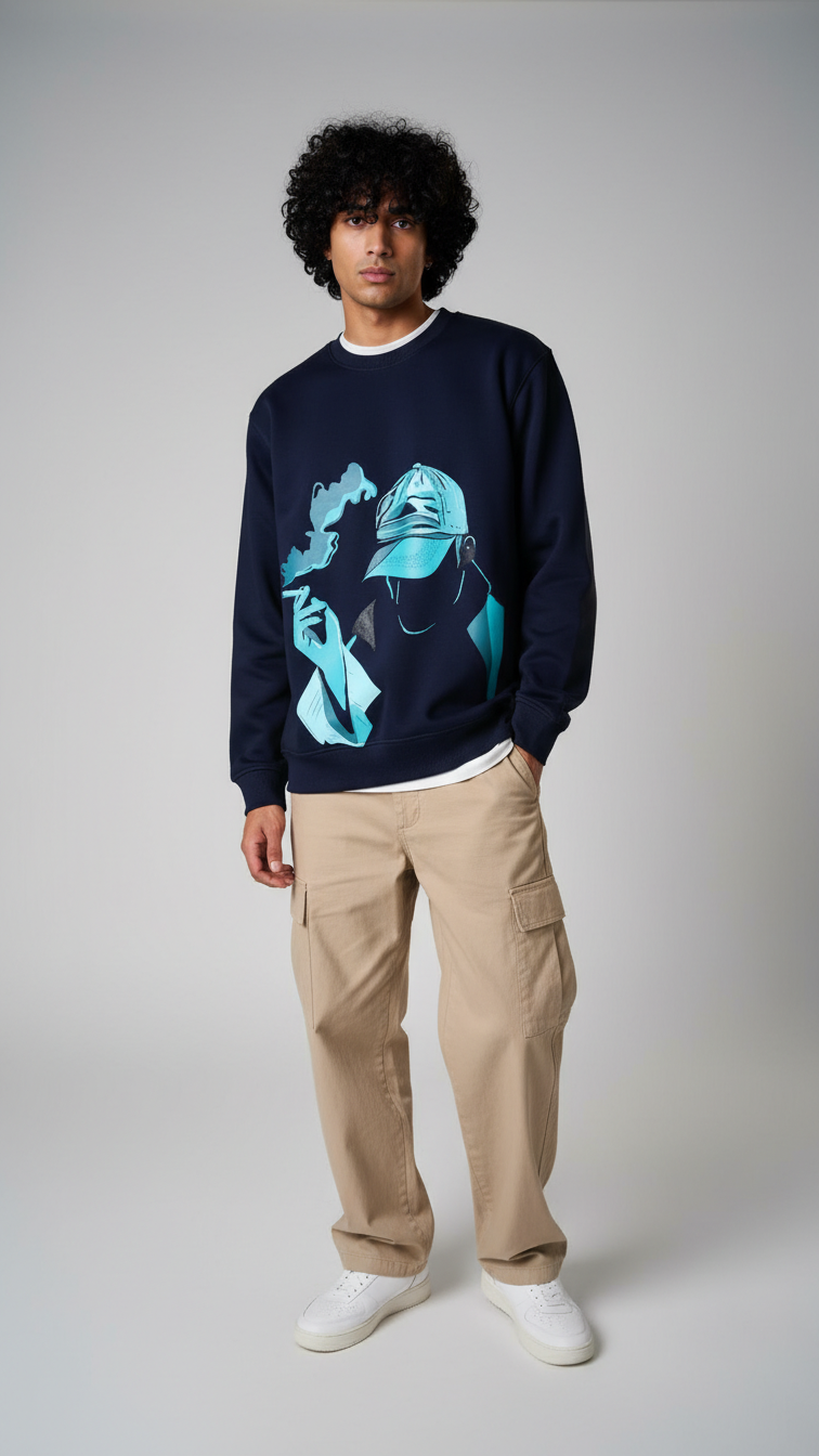 Crafted from superior-quality mercerized fleece (360-380 gsm), this sweatshirt offers an incredibly soft, cozy feel while providing warmth and durability. The high colorfastness ensures the deep white fleece and the sophisticated print maintain their vibrancy and richness after many washes, so you can enjoy its bold look for years to come. The mercerized finish adds a smooth, refined texture, elevating the quality and feel of the fabric.