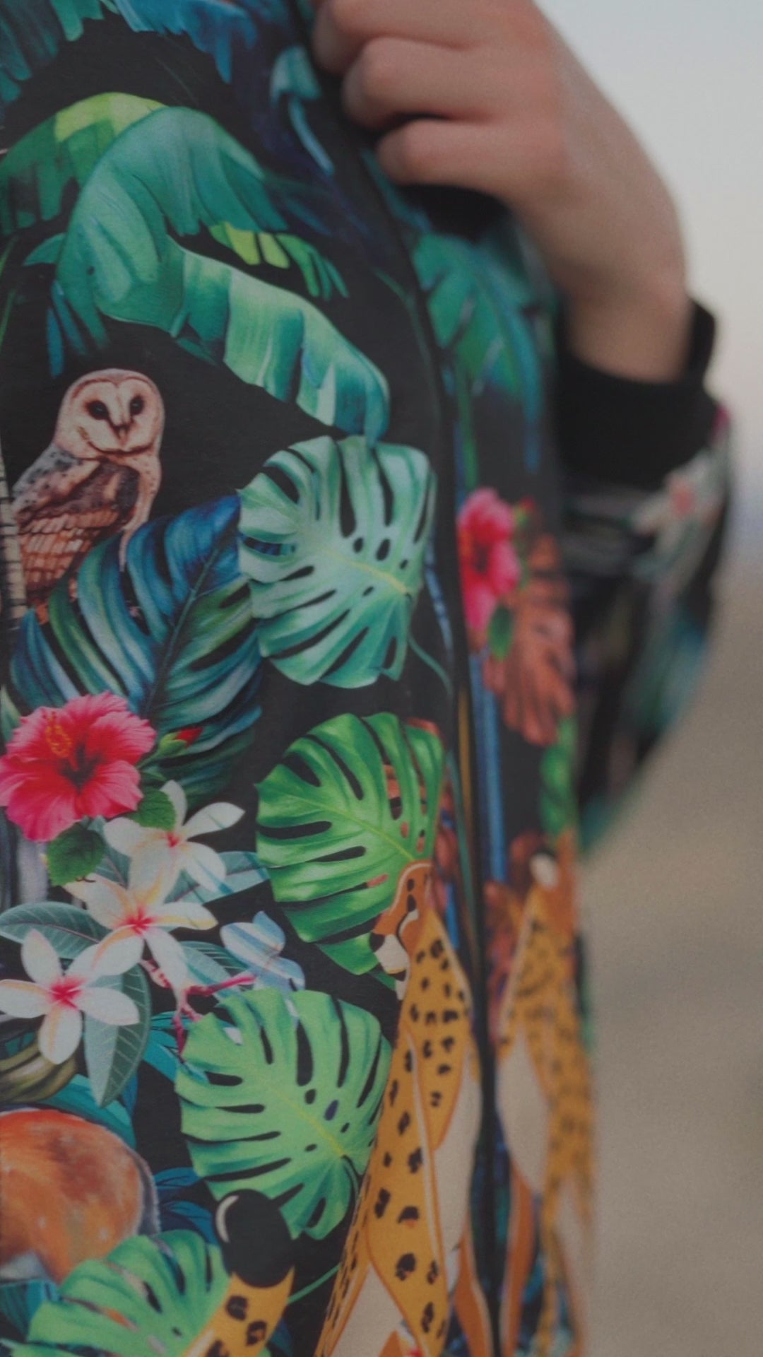 Whether you’re heading out for a casual outing or layering it up for cooler evenings, this tropical print zipper jacket is the perfect blend of style, comfort, and functionality.